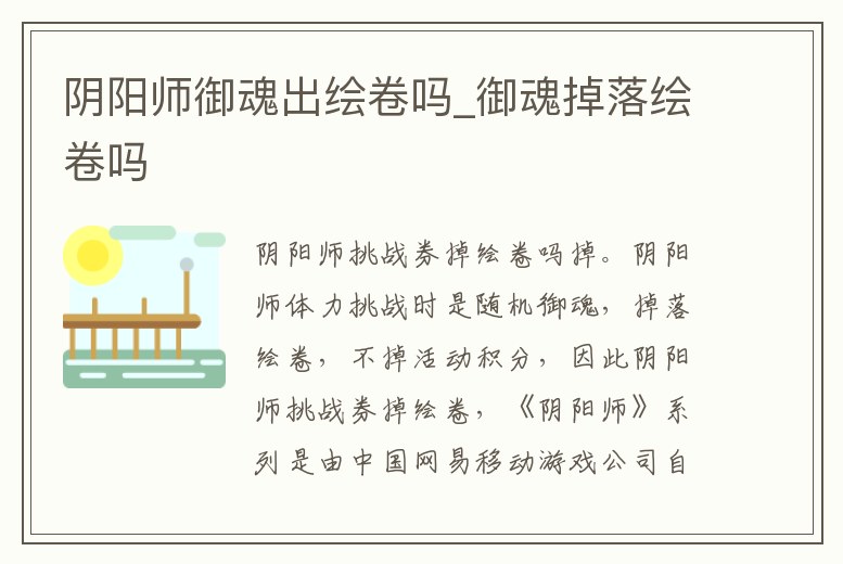 掉。陰陽師體力挑戰(zhàn)時(shí)是隨機(jī)御魂,掉落繪卷,不掉活動(dòng)積分,因此陰陽師挑戰(zhàn)券掉繪卷,《陰陽師》系列是由中國網(wǎng)易移動(dòng)游戲公司自主研發(fā)的3D日式和風(fēng)回合制RPG手游。