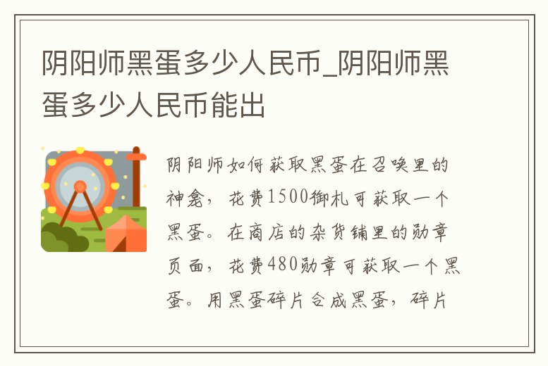 陰陽師黑蛋多少人民幣_陰陽師黑蛋多少人民幣能出