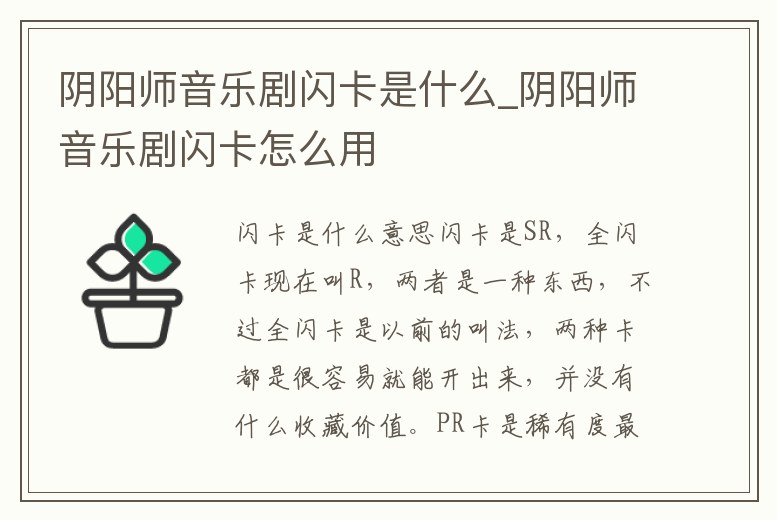 陰陽師音樂劇閃卡是什么_陰陽師音樂劇閃卡怎么用