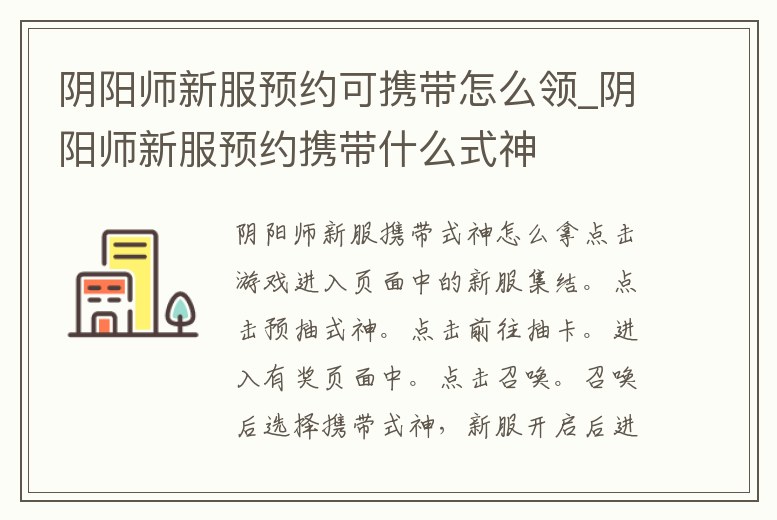 陰陽師新區預約式神只能在開區那一個月期間登錄游戲在郵件里領取,過期就會被系統自動回收 陰陽師新區預約式神只能在開區那一個月期間登錄游戲在郵件里領取,過。為什么新區攜帶式神后來沒有了?新區攜帶式神是在開服之前可以。