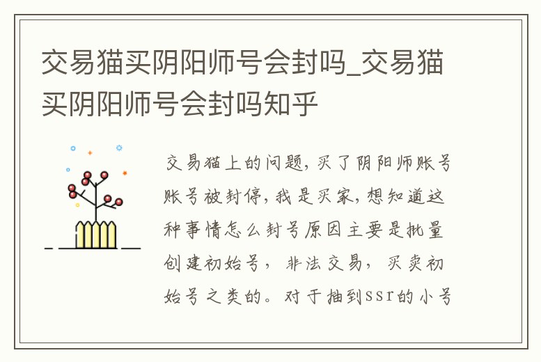 交易貓買陰陽師號會封嗎_交易貓買陰陽師號會封嗎知乎
