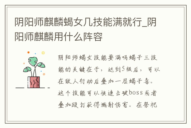 陰陽師麒麟蝎女幾技能滿就行_陰陽師麒麟用什么陣容