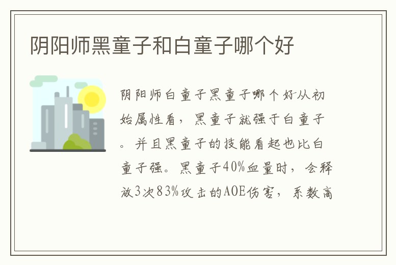 - 陰陽(yáng)師黑童子和白童子哪個(gè)好