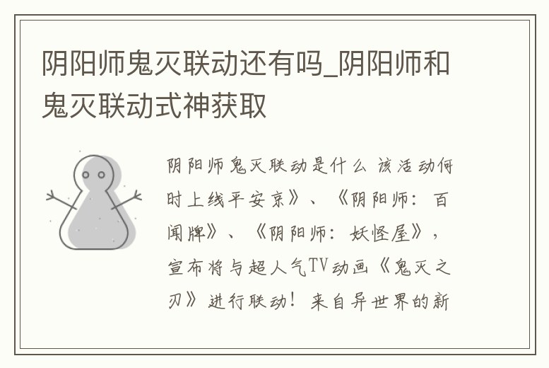 陰陽師鬼滅聯動還有嗎_陰陽師和鬼滅聯動式神獲取