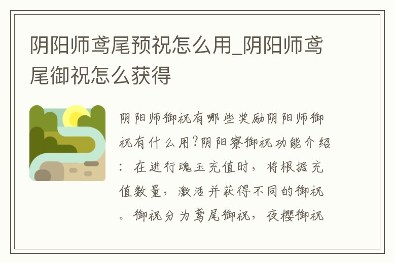 陰陽師鳶尾預祝怎么用_陰陽師鳶尾御祝怎么獲得