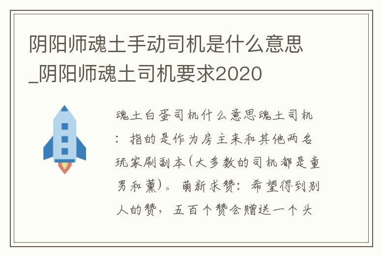 陰陽師魂土手動司機是什么意思_陰陽師魂土司機要求2020