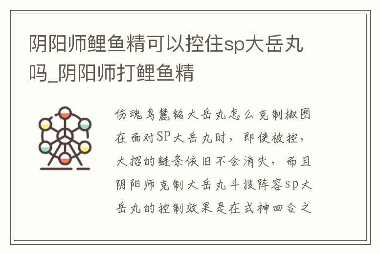 陰陽師鯉魚精可以控住sp大岳丸嗎_陰陽師打鯉魚精