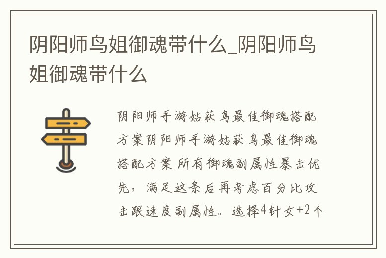陰陽師鳥姐御魂帶什么_陰陽師鳥姐御魂帶什么