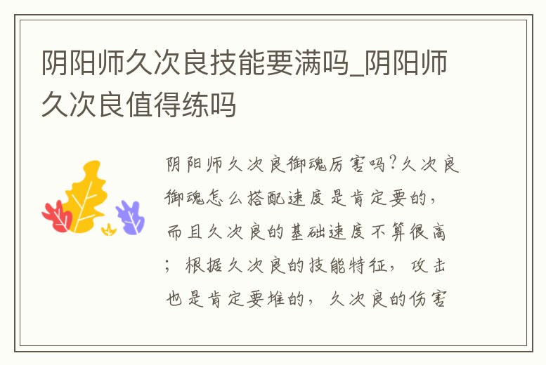陰陽師久次良技能要滿嗎_陰陽師久次良值得練嗎