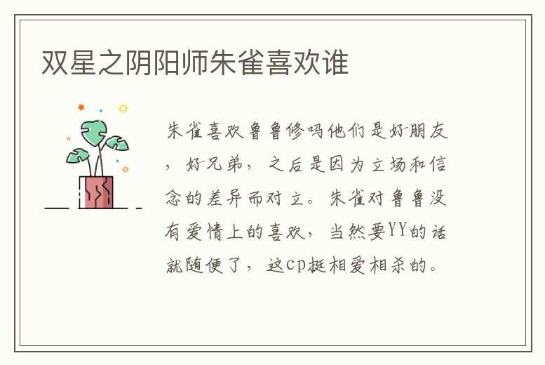 他們是好朋友,好兄弟,之后是因為立場和信念的差異而對立。朱雀對魯魯沒有愛情上的喜歡,當然要YY的話就隨便了,這cp挺相愛相殺的 。