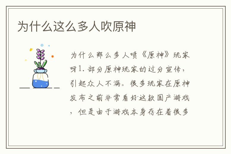 為什么那么多人噴《原神》玩家呀