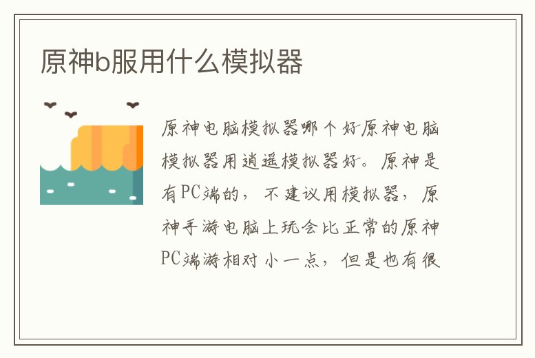 原神的B服要進行運行和使用的話你可以在電腦端使用一個聯想模擬器 原神的B服要進行運行和使用的話你可以在電腦端使用一個聯想模擬器 電腦玩原神閃退怎么解決?電腦玩原神閃退原因和解決方法如下 配置問題 如果發生閃退,則。
