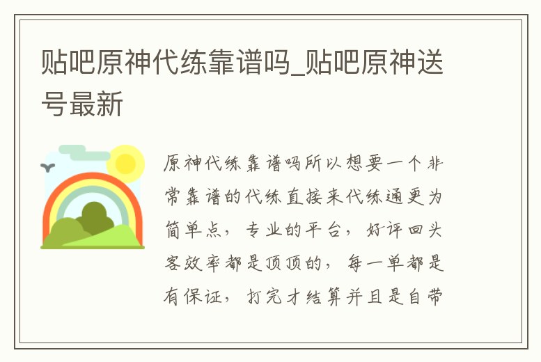 貼吧原神代練靠譜嗎_貼吧原神送號最新