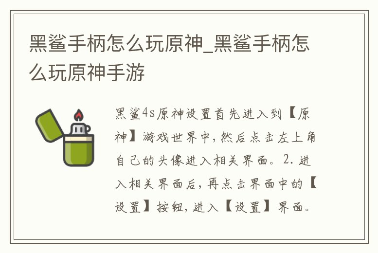 黑鯊手柄怎么玩原神_黑鯊手柄怎么玩原神手游