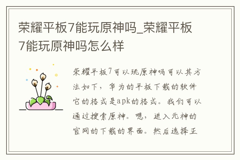 榮耀平板7能玩原神嗎_榮耀平板7能玩原神嗎怎么樣