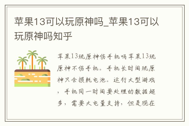 蘋果13可以玩原神嗎_蘋果13可以玩原神嗎知乎