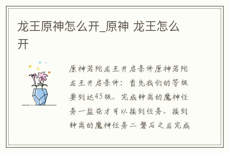 龍王原神怎么開_原神 龍王怎么開
