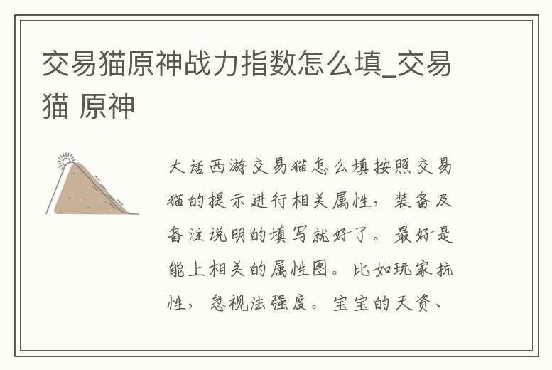 交易貓原神戰力指數怎么填_交易貓 原神