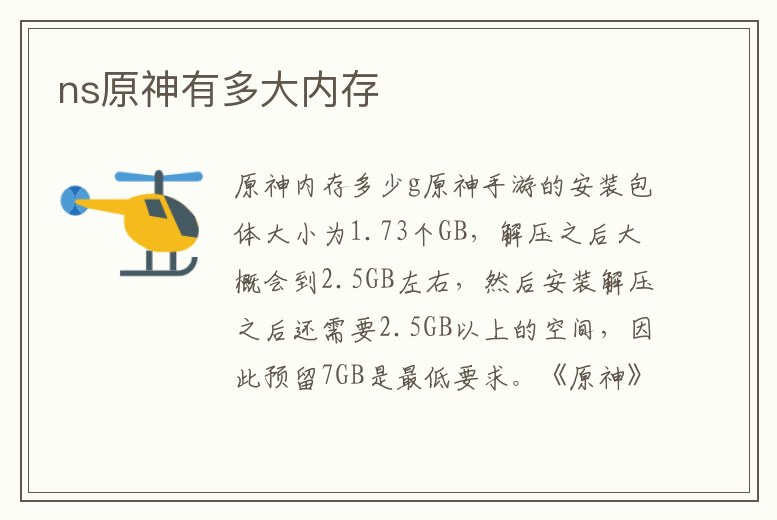 原神內存多少g原神手游的安裝包體大小為1.73個GB,解壓之后大概會到2.5GB左右,然后安裝解壓之后還需要2.5GB以上的空間,因此預留7GB是最低要求。《原神》是由上海米哈游網絡科技股份有限公司制作發行的一款開放世界冒險游戲。于2017年1月底。2、原神占多少內存原神內存共計8G左右,所以安裝原神手游需預留8G以上磁盤空間。《原神》在手機端的游玩體驗還是十分出色的,相信很多朋友也