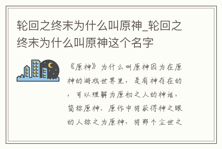 輪回之終末為什么叫原神_輪回之終末為什么叫原神這個名字