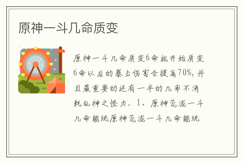 2.一命的效果,就是在每次開大后,恢復8*3=24點能量,極大加快了八重神子的大招循環。3.但如果要真正的質變命座,就是6命,唯一的缺點就是太貴了。6命之后無視敵人60%防御力,相當于直接給E增傷40%。知識拓展:八重。