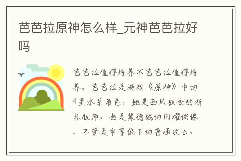 芭芭拉原神怎么樣_元神芭芭拉好嗎