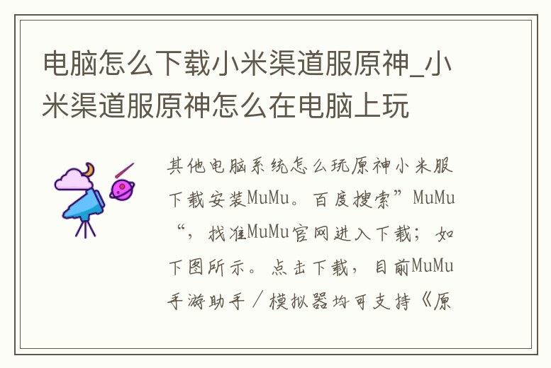 電腦怎么下載小米渠道服原神_小米渠道服原神怎么在電腦上玩
