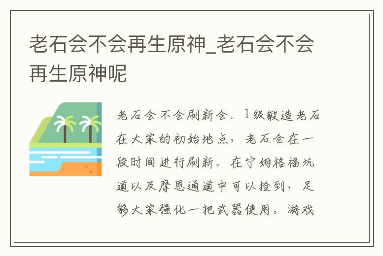 作用介紹 通過老石,玩家可以獲得哪些好處呢?具體如下:這里推測,老石應該是一種禮物,后續預計是可以贈送給鐘離或其他角色的。原神2023最新攻略分享 海螺位置分布圖鳴弦列島海螺艾爾海森圣遺物搭配瑤瑤圣遺物選擇原神琺露珊。