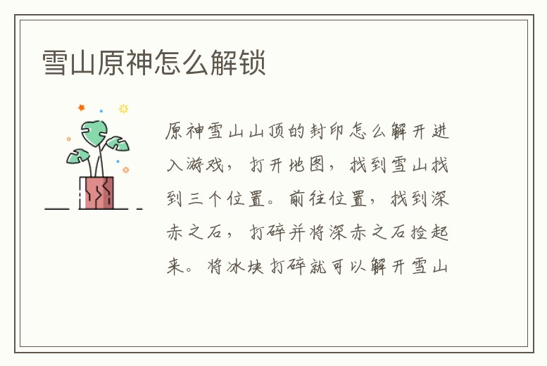 具體解鎖方法如下:首先進入原神。如圖所示:進入游戲內,然后打開地圖,來到箭頭指的這個地方,如圖所示:然后跟著圖中的箭頭一直往上走,如圖所示:接著就可以看到七天神像,但是七天神像被冰塊凍住的無法解開。