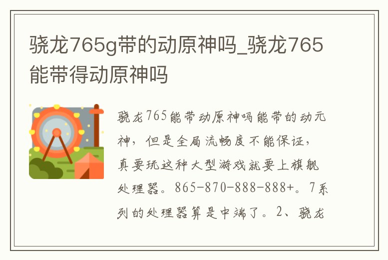 驍龍765g帶的動(dòng)原神嗎_驍龍765能帶得動(dòng)原神嗎
