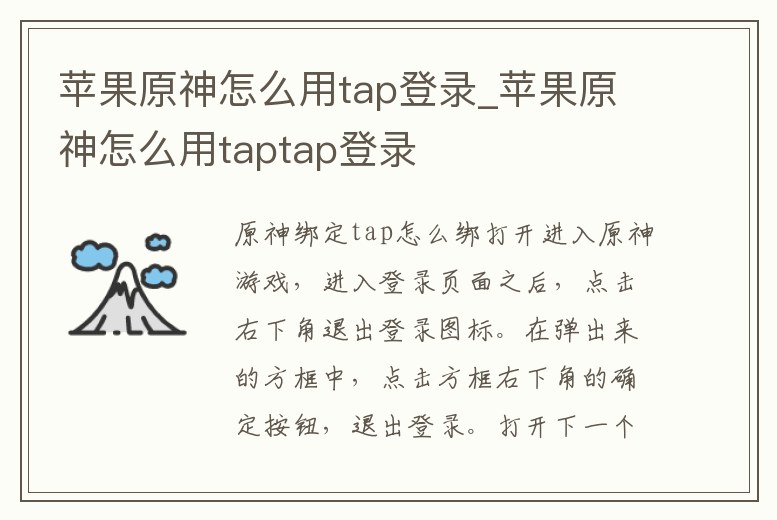 蘋果原神怎么用tap登錄_蘋果原神怎么用taptap登錄
