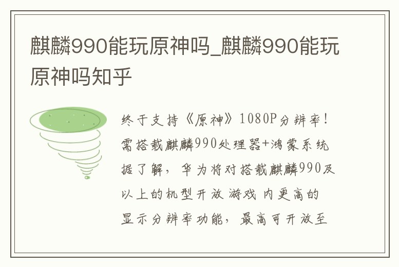 麒麟990能玩原神嗎_麒麟990能玩原神嗎知乎