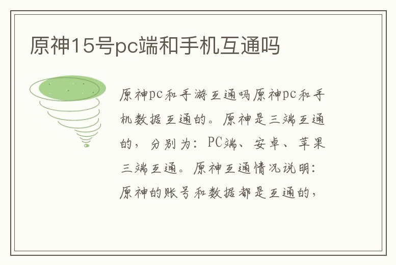 原神15號(hào)pc端和手機(jī)互通嗎