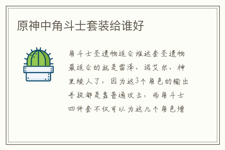 1、《原神》角斗士圣遺物適合誰