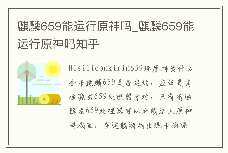 麒麟659能運行原神嗎_麒麟659能運行原神嗎知乎