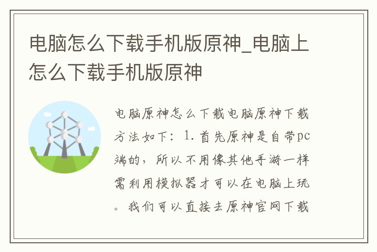 電腦怎么下載手機版原神_電腦上怎么下載手機版原神