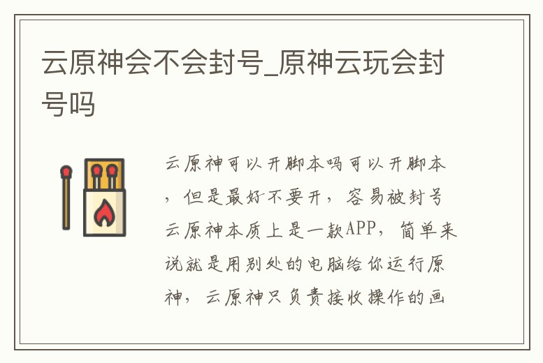 云原神可以開腳本嗎可以開腳本,但是最好不要開,容易被封號云原神本質上是一款APP,簡單來說就是用別處的電腦給你運行原神,云原神只負責接收操作的畫面,因此可以輕松跑到60幀,也不用擔心手機發熱和耗電的問題。但是對網絡環境要求較高,如。2、用taptap云玩玩原神要被封號嗎會被米哈游封號一般只有2個原因。1,購買了各種腳本刷的初始號
