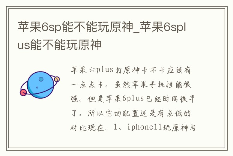 蘋果6sp能不能玩原神_蘋果6splus能不能玩原神