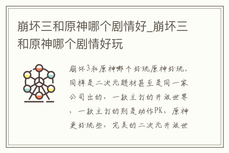 崩壞三和原神哪個劇情好_崩壞三和原神哪個劇情好玩