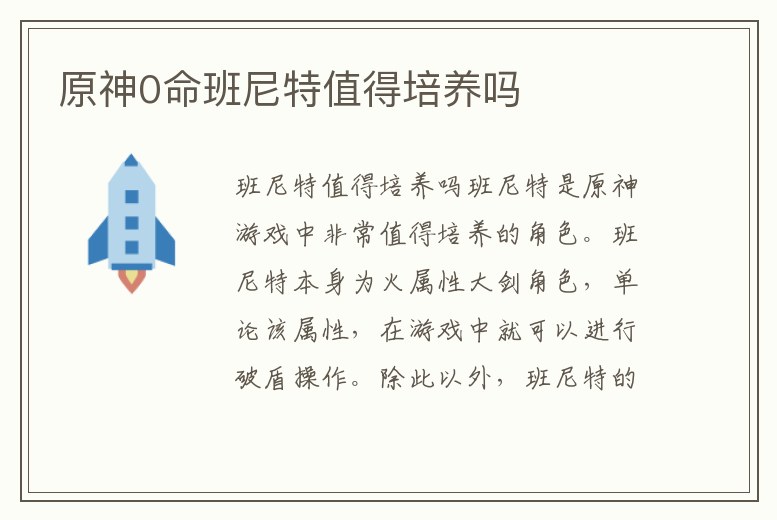 班尼特值得培養(yǎng)嗎班尼特是原神游戲中非常值得培養(yǎng)的角色。班尼特本身為火屬性大劍角色,單論該屬性,在游戲中就可以進行破盾操作。除此以外,班尼特的火屬性還能夠給玩家隊伍添加雙火B(yǎng)UFF。班尼特的技能能夠給隊伍進行增傷,大招還能給隊伍回血