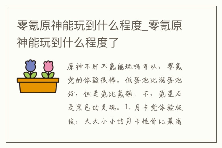 零氪原神能玩到什么程度_零氪原神能玩到什么程度了