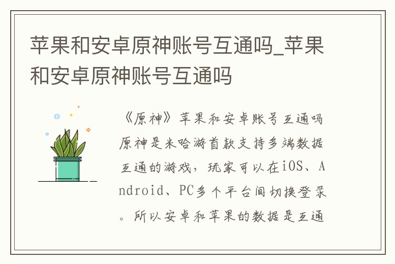 蘋果和安卓原神賬號互通嗎_蘋果和安卓原神賬號互通嗎