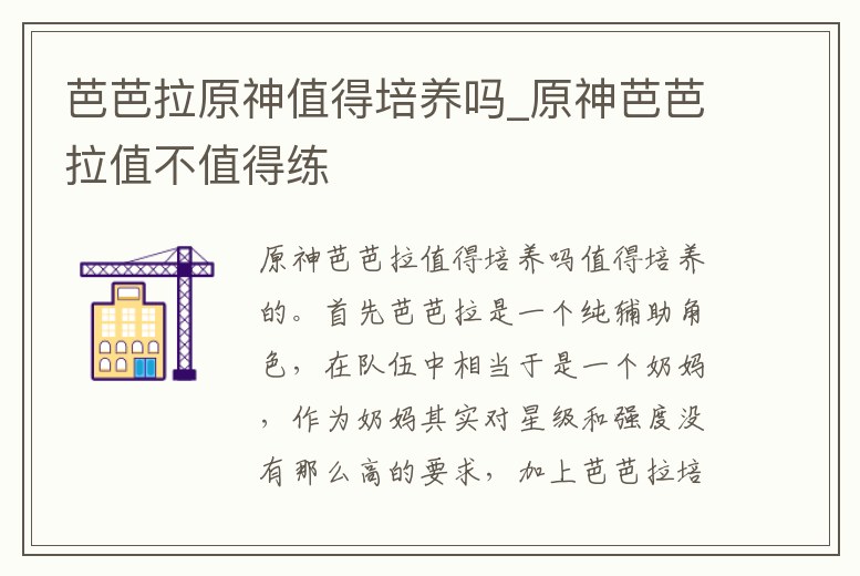 值得培養的。首先芭芭拉是一個純輔助角色,在隊伍中相當于是一個奶媽,作為奶媽其實對星級和強度沒有那么高的要求,加上芭芭拉培養起來比其他的五星角色低得多,所以還是非常適合培養一下的。即便后期大家想要使用五星輔助角色了。