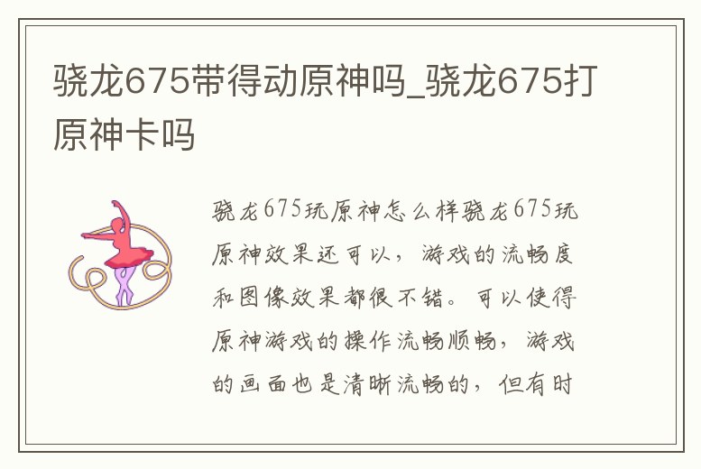 驍龍675帶得動原神嗎_驍龍675打原神卡嗎