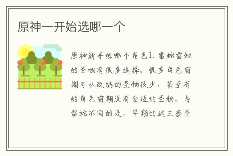 原神新手練哪個角色1.雷蛇雷蛇的圣物有很多選擇。很多角色前期可以改編的圣物很少,甚至有的角色前期沒有合適的圣物。與雷蛇不同的是,早期的這三套圣物,即沃瑪尼安、戰(zhàn)士、勇士,都非常適合雷蛇。如果沒有好的4件套,也可以將這三套圣物配。1、原神初始角色哪個好最后是安柏和凱亞,這兩個初始角色的機制和輸出能力都較為一般,不推薦作