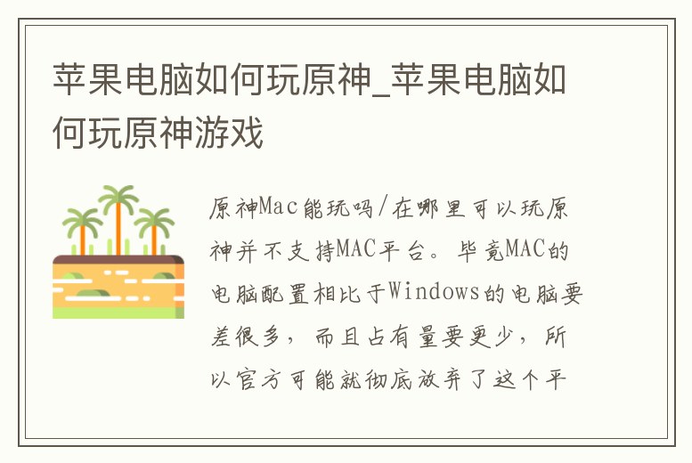 蘋果電腦如何玩原神_蘋果電腦如何玩原神游戲