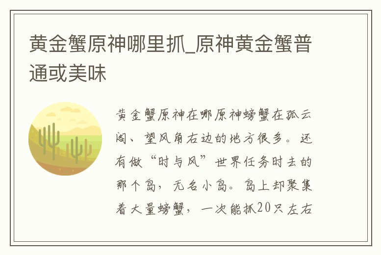 黃金蟹原神哪里抓_原神黃金蟹普通或美味