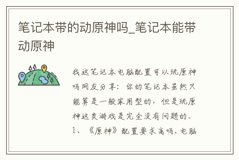 筆記本帶的動原神嗎_筆記本能帶動原神