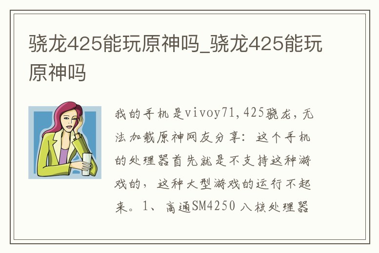 驍龍425能玩原神嗎_驍龍425能玩原神嗎