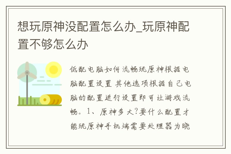 想玩原神沒配置怎么辦_玩原神配置不夠怎么辦